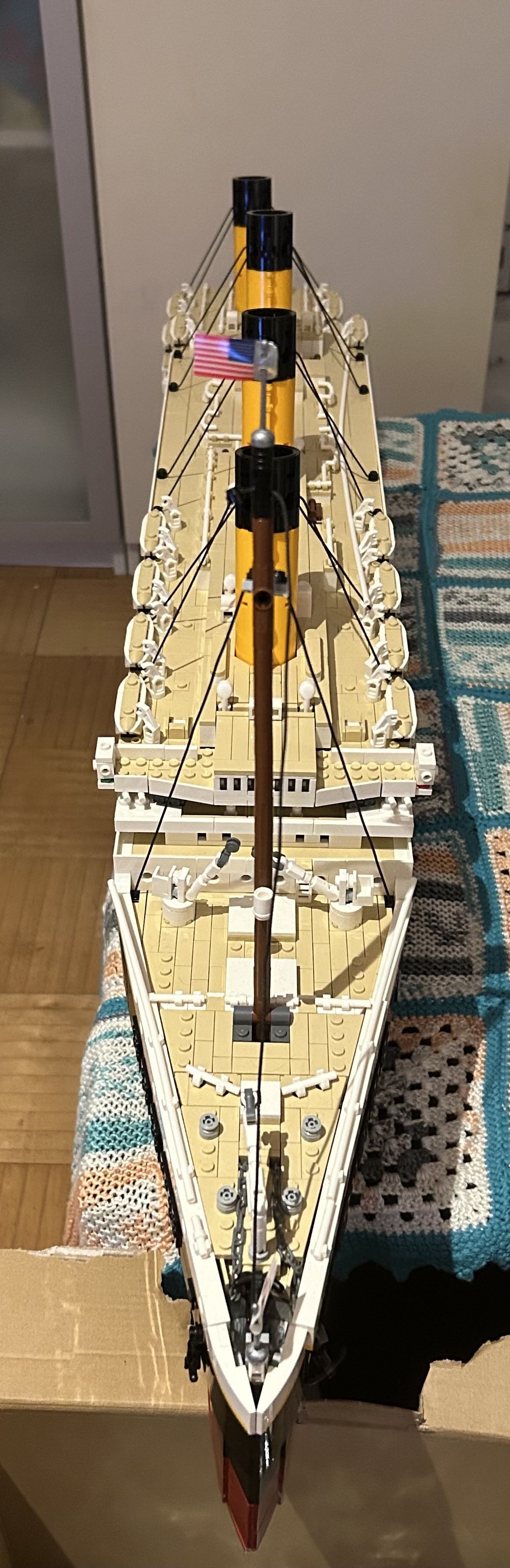 +++ 27. Dezember, 14.40 Uhr: Intro und Infotext sind fertig. Nun könnte eigentlich das Bauen beginnen. Doch Tellman und seine Freunde sind noch an einem anderen Bauprojekt beschäftigt. 112 Jahre nach dem Untergang der Titanic, soll nun ein neueres, noch unsinkbareres Schiff auf den Weg gebracht werden. Die Bauarbeiten stehen vor dem Abschluss, aktuell sieht das Schiff so aus +++