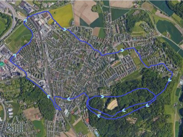 Ausgangslage: Der Event wird nach Jury-Entscheid umbenannt in "Der dreifache Ostermundigenberg". Die "Waldschlaufe" (siehe Bild der Strecke unten) muss neu zweimal absolviert werden. Dies ist der Abschnitt mit den meisten Höhenmetern. Es geht dieses Mal nicht mehr um die Zeit, sondern ein erstes Mal um die Ausdauer. Start und Zielort ist die Kleine Allmend (im oberen linken Bereich des Streckenbildes zu erkennen). Die Strecke wird nur einmal absolviert.Die Strecke