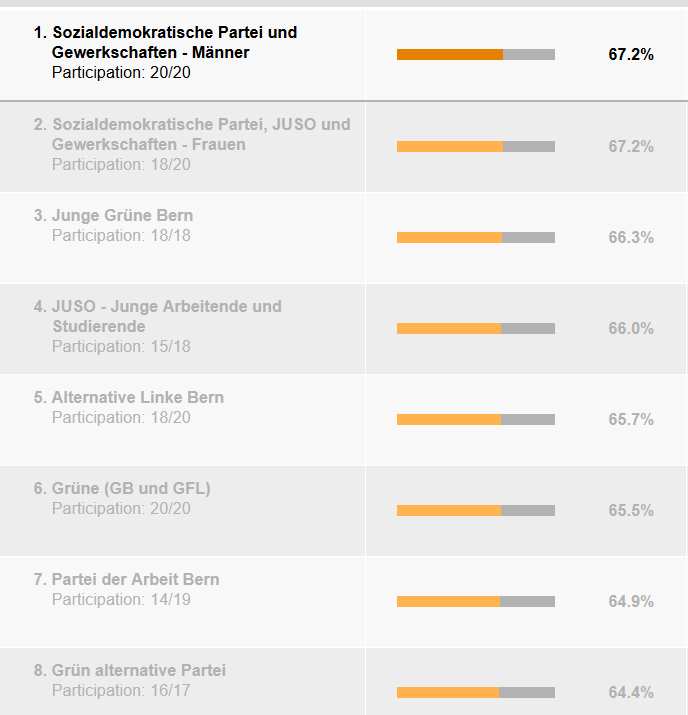 +++ Justiz und Polizei oder auch die Nause-Kategorie. 1x Ja und 4x Nein klicke ich, 1x Nein und 4x Ja drücken Nause, Käser, KKS und Konsorten. Dreimal dürfen Sie raten, wen wir bei den Berner Gemeinderatswahlen nicht gewählt haben. #RGM #DyStapi +++